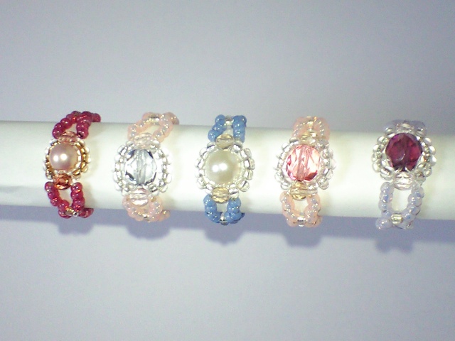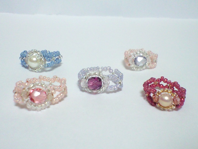 メインに使ってるものはチェコのファイヤーポリッシュ、もしくはガラスパールの5mm、6mmなんですが、ここらへんはまあ、普段使いするようなお値段なんです。でも、周りをキラキラのビーズで囲うことによってちょっと高級感が出るような気がしてとても気に入ってます