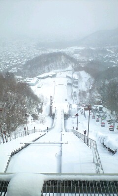 下の画像は今日行った大倉山のジャンプ台の上から見た図です。スキージャンプをする人の気持ちにちょっとなれそうな撮り方をしたくて撮ってみました。