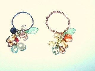 今回の指輪はお買い得のアクリルビーズをショップ99で見つけたのでそれを使ったものです(;´▽`A``そうなんです、ソロバン型のビーズはスワロフスキーじゃなくてアクリルビーズなんですね。大量に入っていてポイントになる色で安っぽくも見えなくてこれは買って正解だったな、と満足です