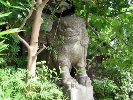 それが左の狛犬(でも実際の配置は右側)。右の狛犬はうっそうと茂った木の中にいて、友人に言われるまで存在に気づかずw