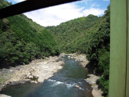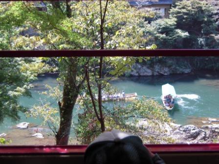 ↑左の画像には保津川下りの船が見えますが通るたびに手を振ってました。