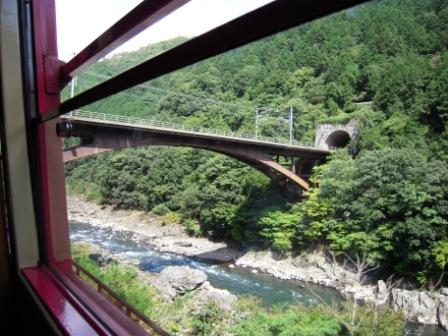 最初の見所は私たちの席とは逆側の窓から見える景色でしたが、車掌さんが空いていたら移動してもいい、と言っていたため移動して景色を眺めていました。