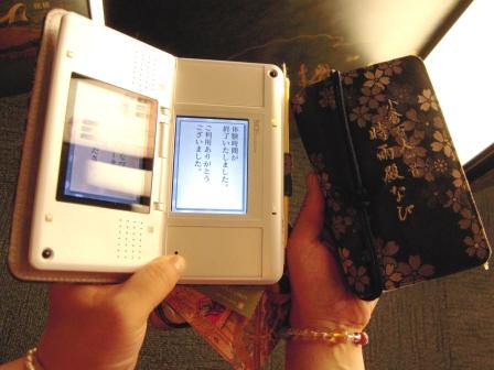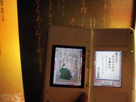 そして時雨殿ナビを返却した後は、竹筒の形の画面で百人一首の札の関係のクイズに答えたり、勝ち抜き五番勝負という画面で歌人と百人一首の勝負をするもの(取り札は8枚のみ)がありました。